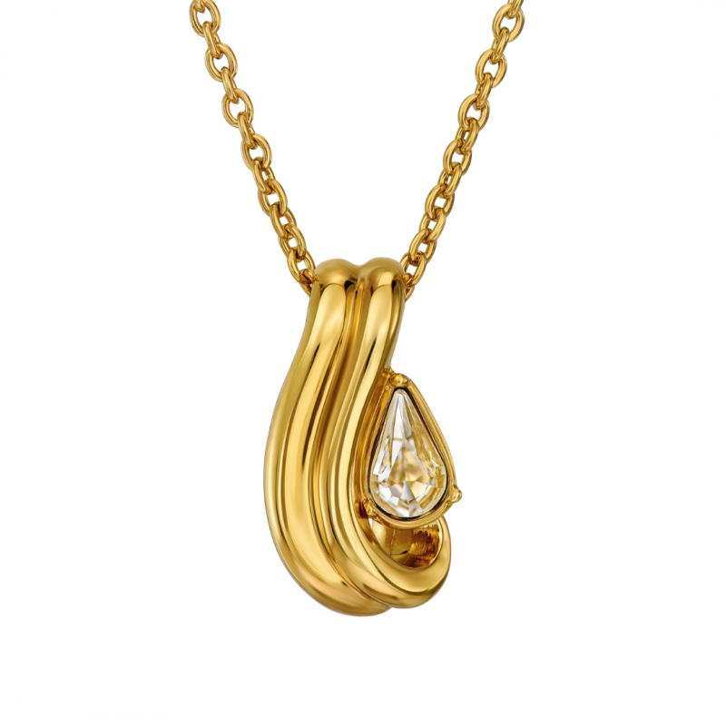 Traveller Anhänger mit Kette - Vergoldet - Kristal - 6x3,6mm - Tropfenform - 17x9mm - 38+3+3 cm