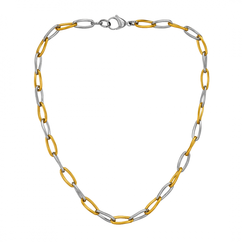 Traveller Collier - Edelstahl - Bicolor - Silberfarben & Vergoldet - Glieder - 47cm
