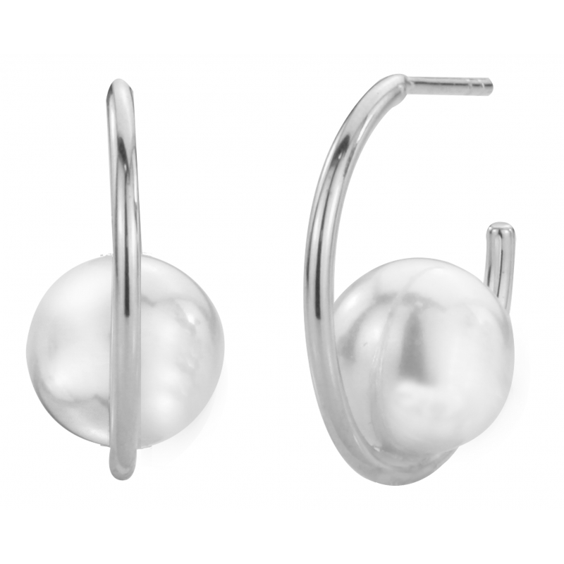 Traveller Creolen - platiniert - 10mm Perlen weiß