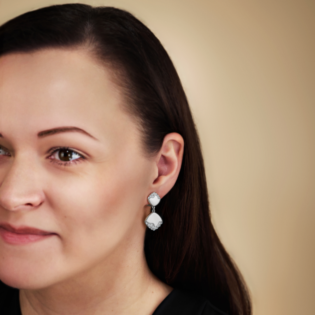 Traveller Ohrclips - Hänger - Silberfarben - Kristalle - Quadratisch - Platiniert - 30x15mm