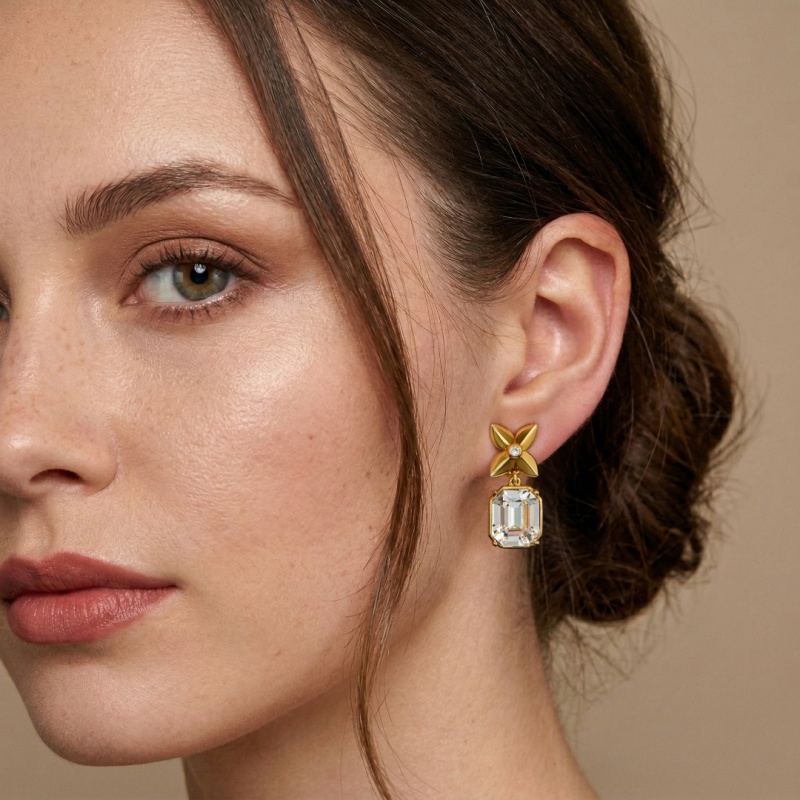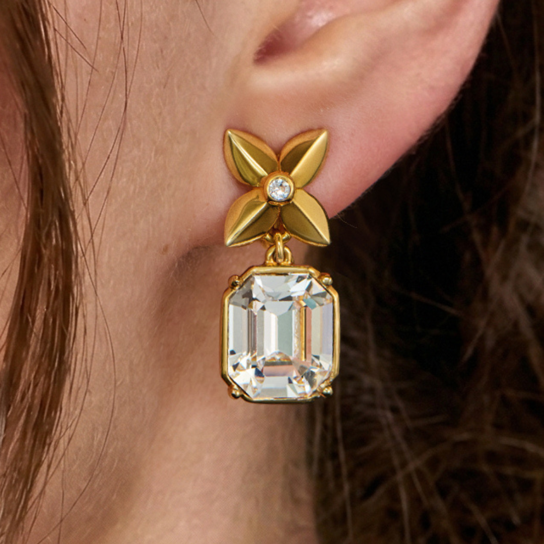 Traveller Ohrclips Hängend – Vergoldet – Kristalle – Achteckig – 27 x 12 mm – Blume