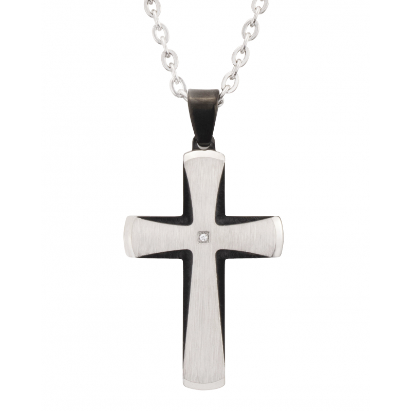Traveller Anhänger mit Kette - Edelstahl - schwarz - Zirkonia - 50+5cm