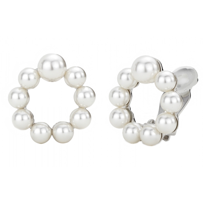 Traveller Ohrclip - Platiniert - 6/8mm Perle weiß