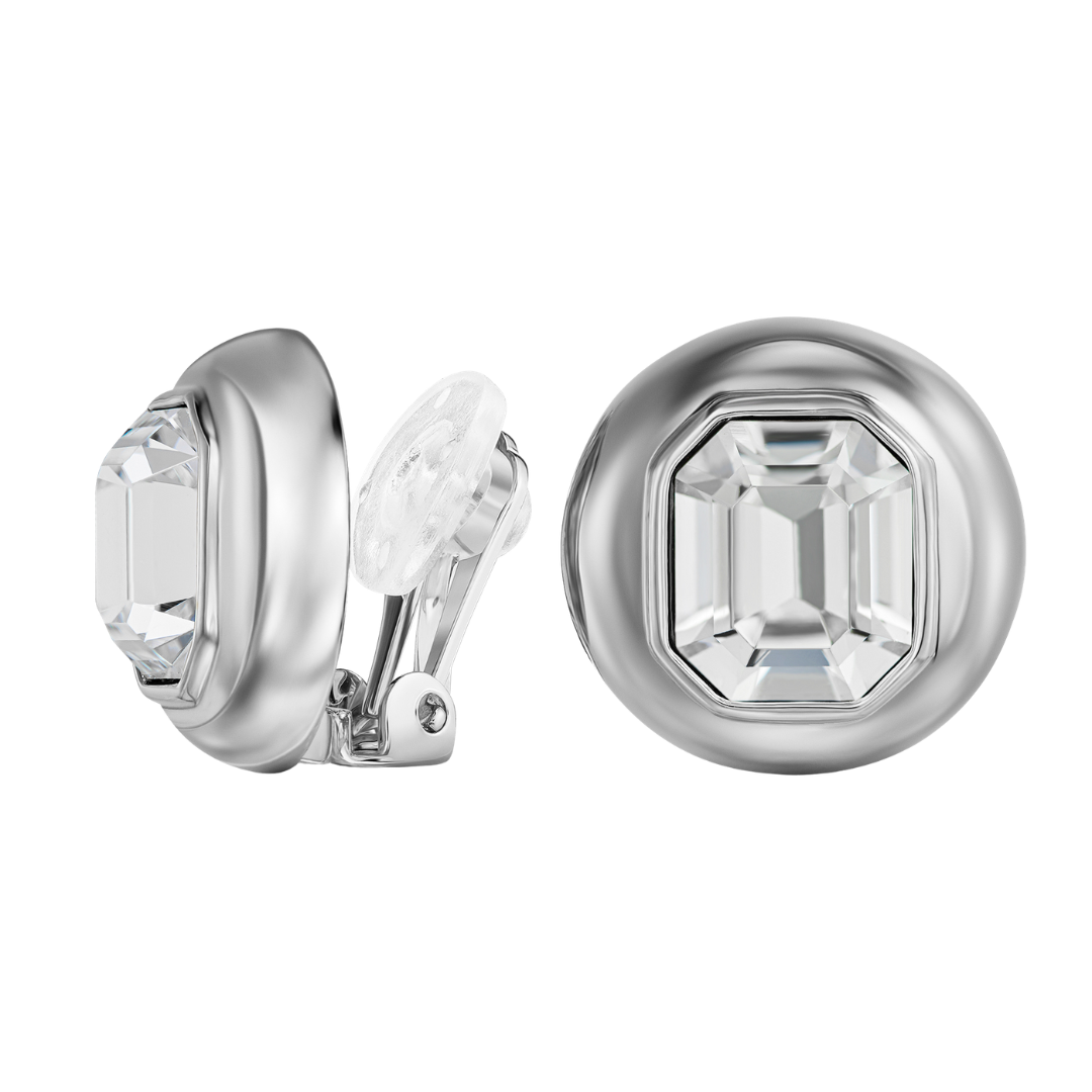 Traveller Ohrclip - Platiniert - Kristalle - 13x11mm - Achteck - 20mm - Rund