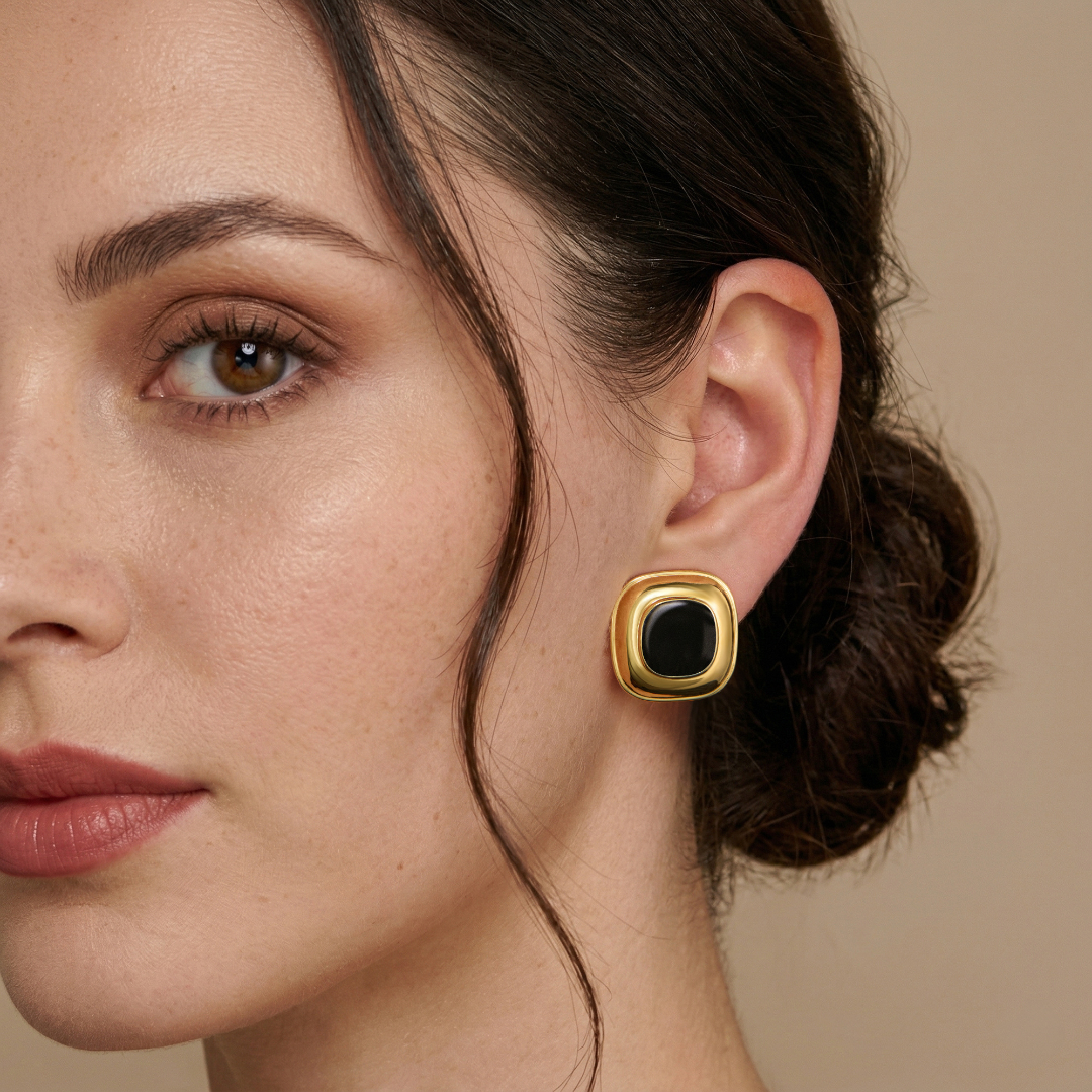 Traveller Ohrclip - Vergoldet - Schwarzes Emaille - 12x12mm - Quadratisch - 20mm - Quadratisch