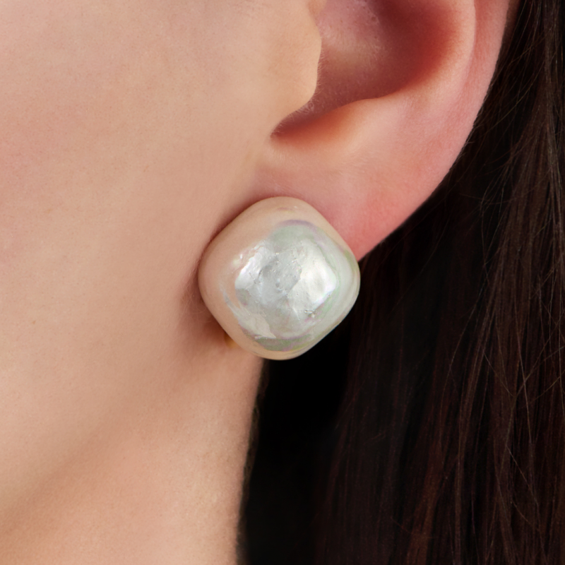 Traveller Ohrlips - Silberfarben - Barock Perle - 16mm - Weiß - Quadratisch - Platiniert