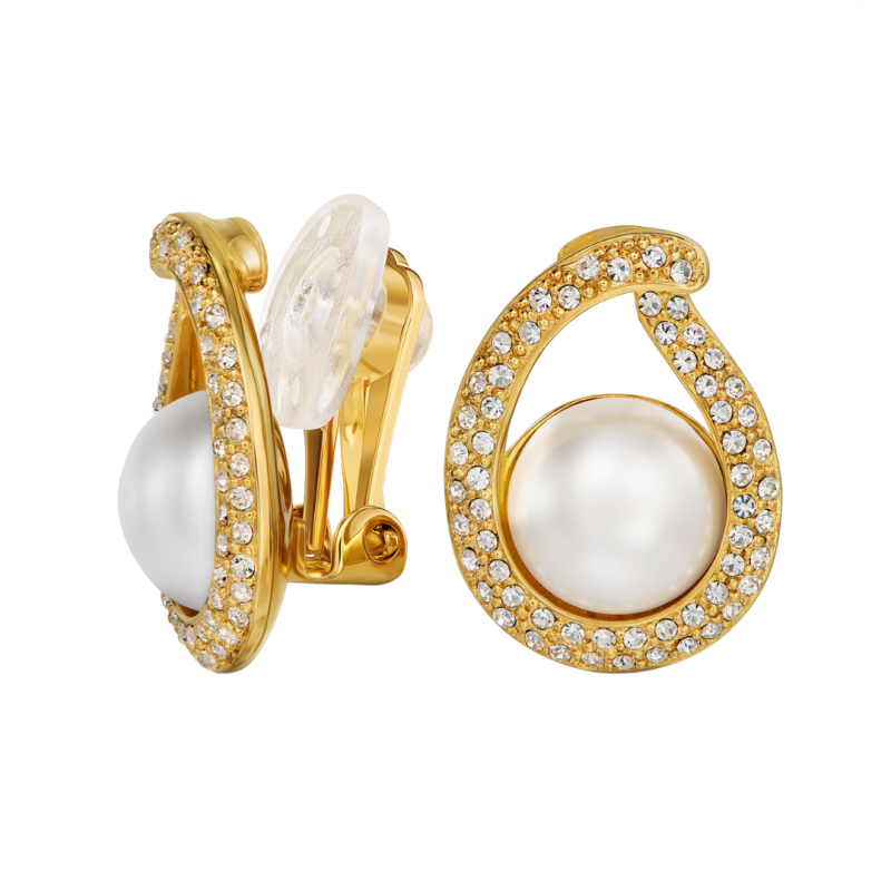 Traveller Ohrclip - Vergoldet - Perle - 10mm - Weiß - Kristall - 20x15 mm - Tropfenform