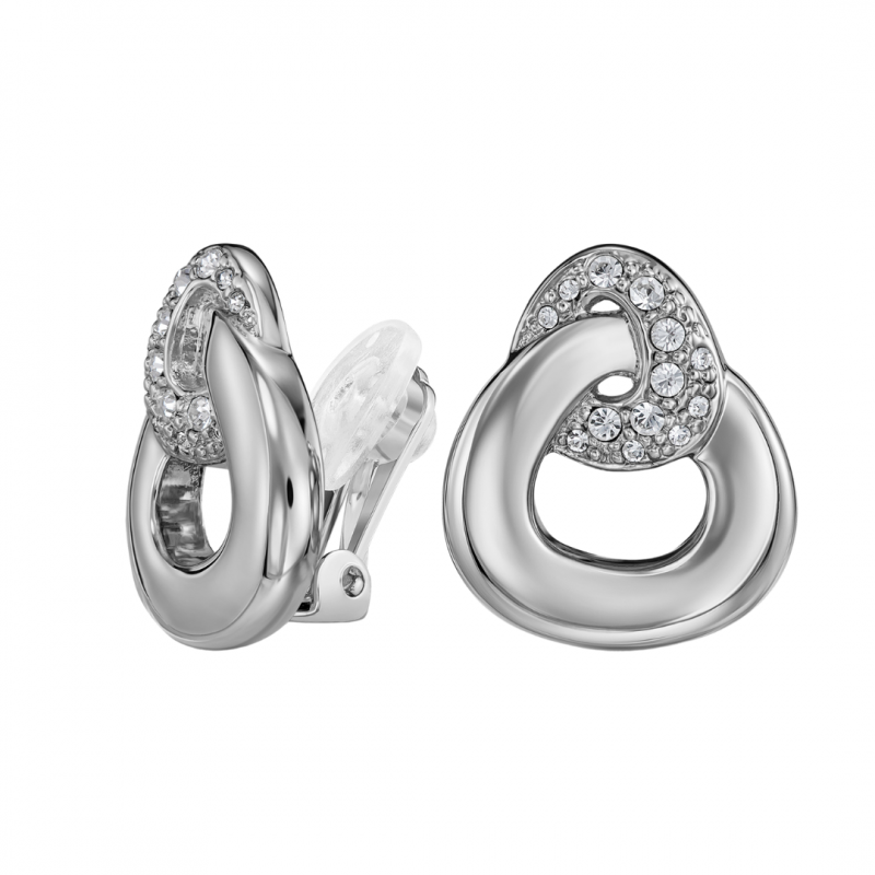 Traveller Clip Earrings - Crystals - Triangle - Platinum Plated - 20 x 17 mm