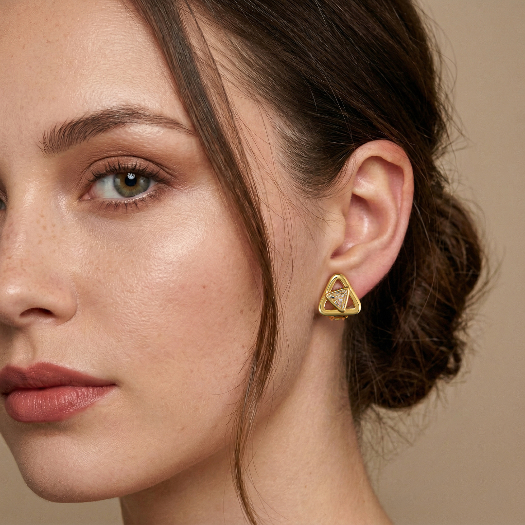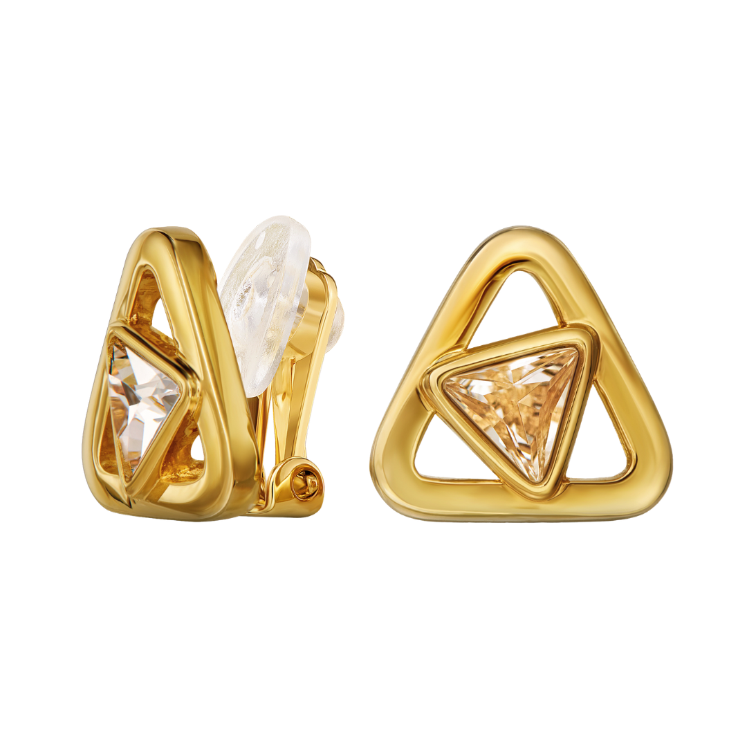 Traveller Clip Earrings - Gold plated - Crystals - 7 mm - Triangle - 15 mm - Triangle