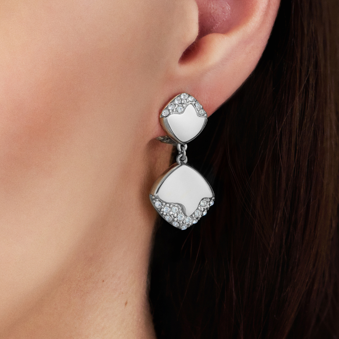 Traveller Clip-on Earrings - Drop Earrings - Silver Coloured - Crystals - Square - Platinum Plated - 30x15mm