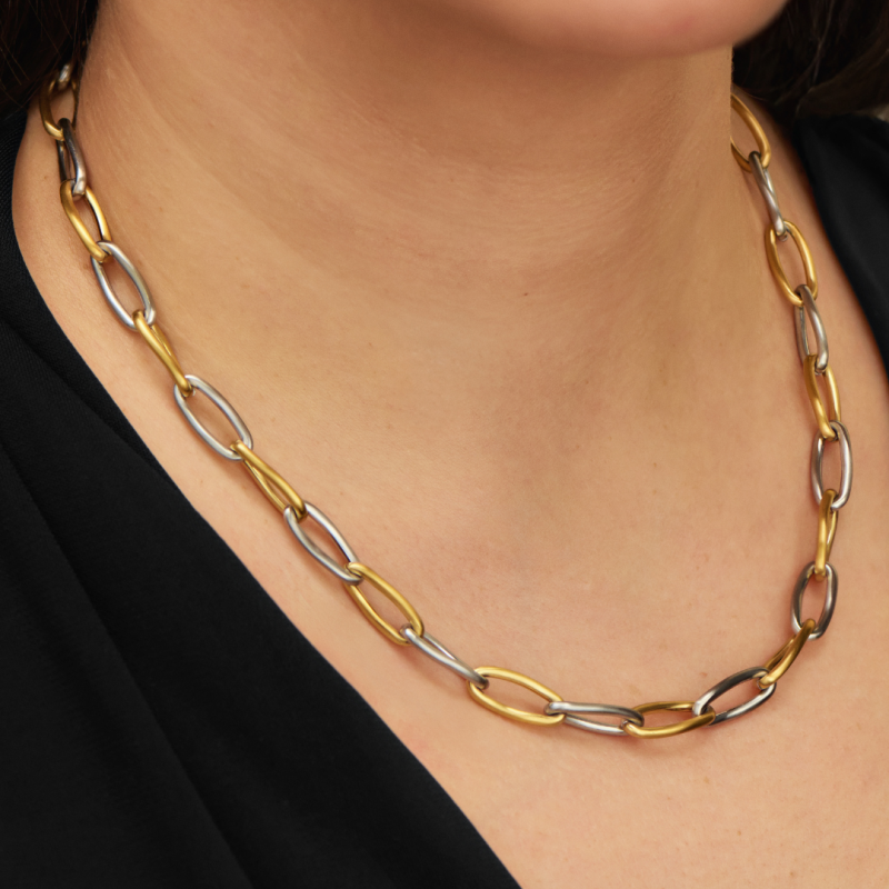 Traveller Necklace - Stainless Steel - Bicolor - Silver Coloured & Gold Plated - Links - 47cm