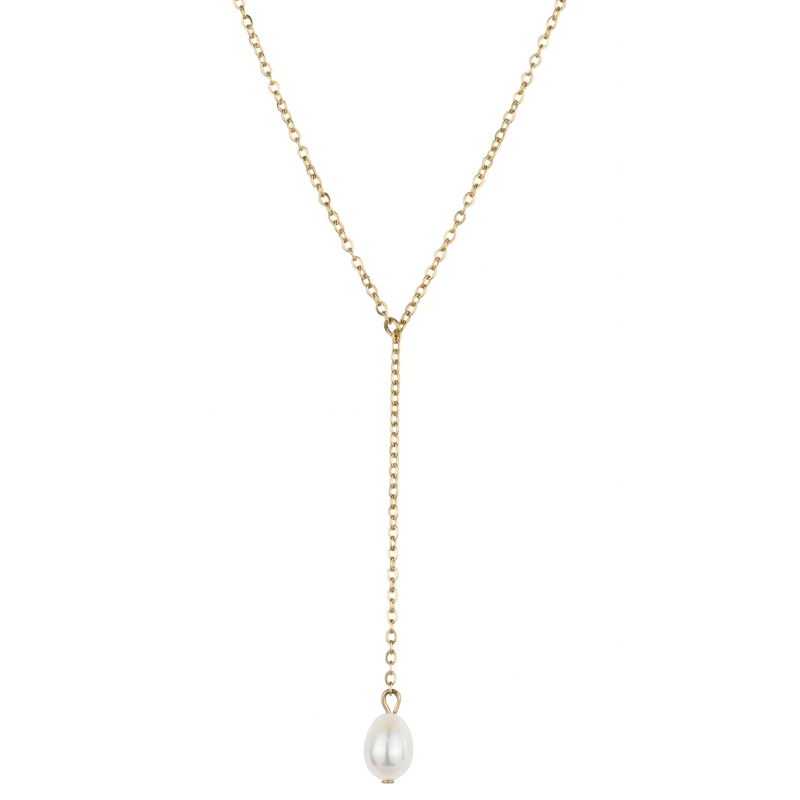 Traveller Necklace - Stainless steel gold plated - Pearl (freshwater) - 48 cm