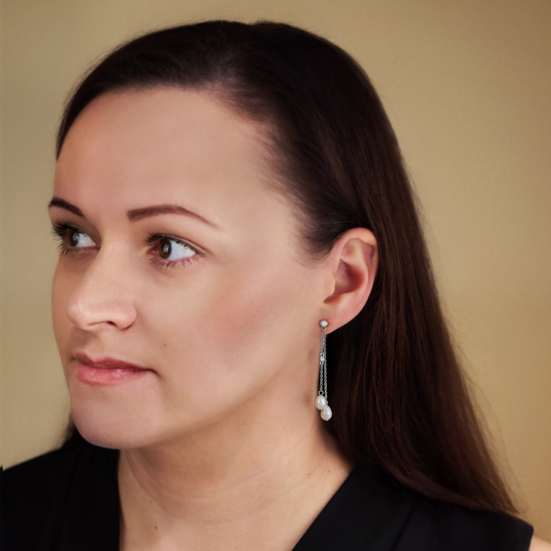 Traveller Drop Earrings - Silver Coloured - Baroque Pearls - 8x6mm - White - Crystals - Platinum Plated - 55x6mm