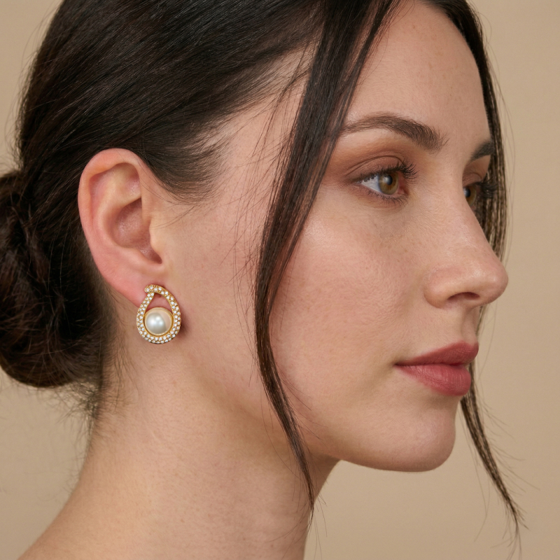 Traveller Clip Earrings - Gold plated - Pearl - 10mm - White - Crystal - 20x15mm - Teardrop shape