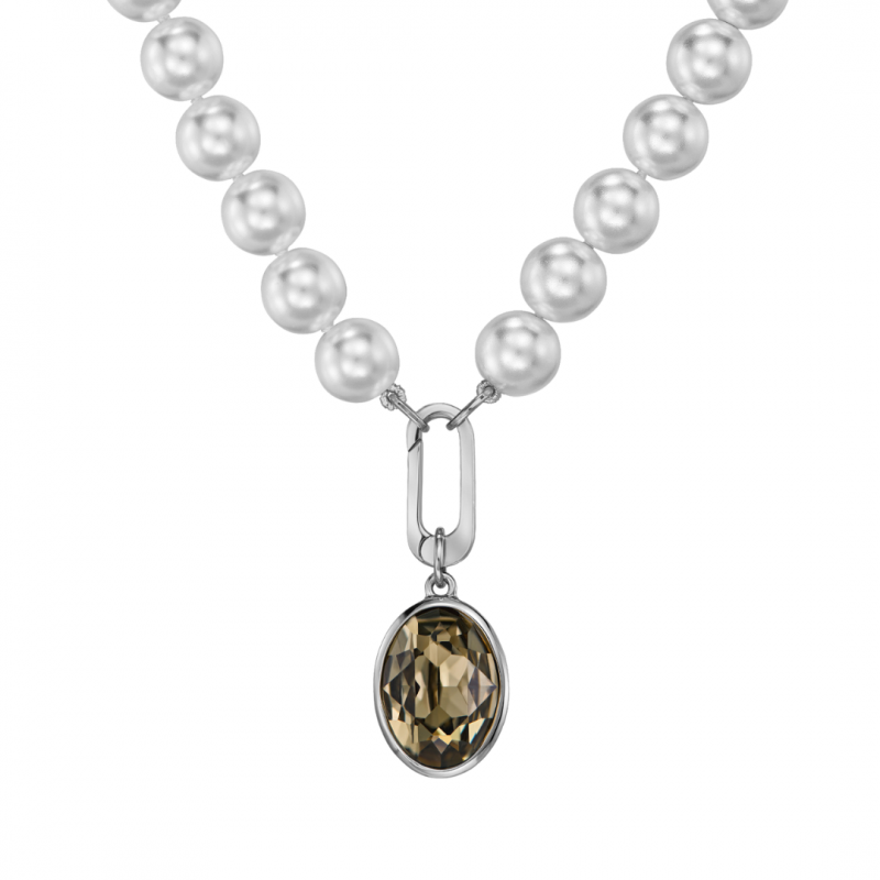 Traveller Pearl Necklace with Pendant - Pearls - 10mm - White - Crystal - Grey/Black - Oval - 45cm - Plated