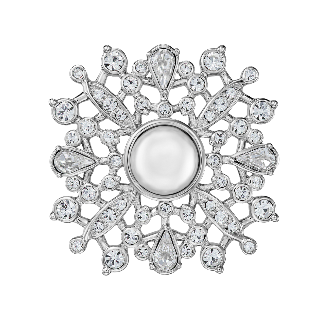Traveller Brooch - Platinum Plated - Half Pearl - 10mm - Licht Grey - Crystals - 33 mm