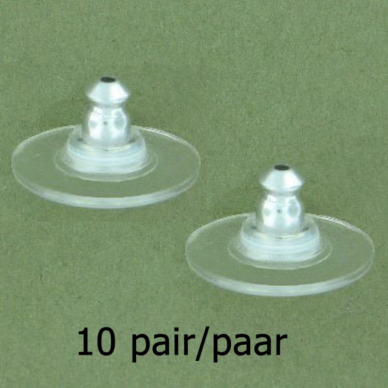 Dos des oreillettes - argentées - avec disque en plastique - 10 paires