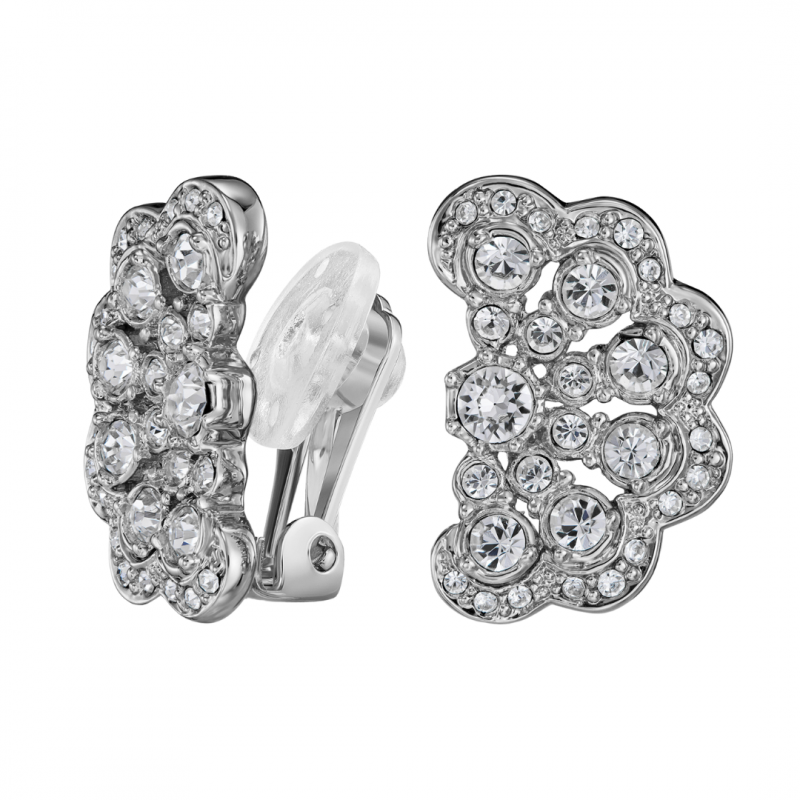 Traveller Boucles d'oreilles clip - Cristaux - Fleur - Platiné - 20x12 mm