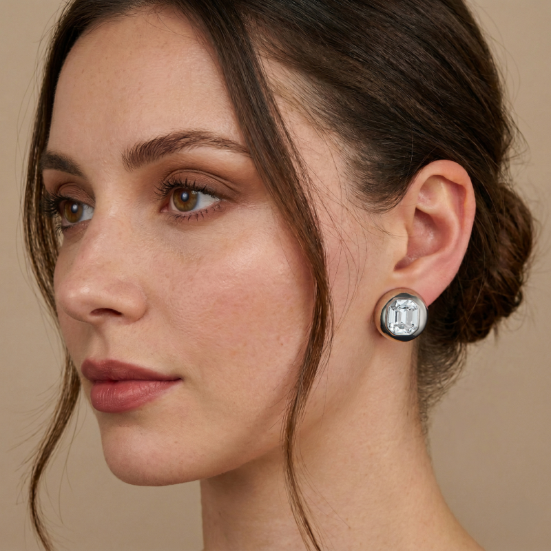 Travelller Boucles d'oreilles clips - Platiné - Cristaux - 13x11mm - Octogonal - 20mm - Circulaire