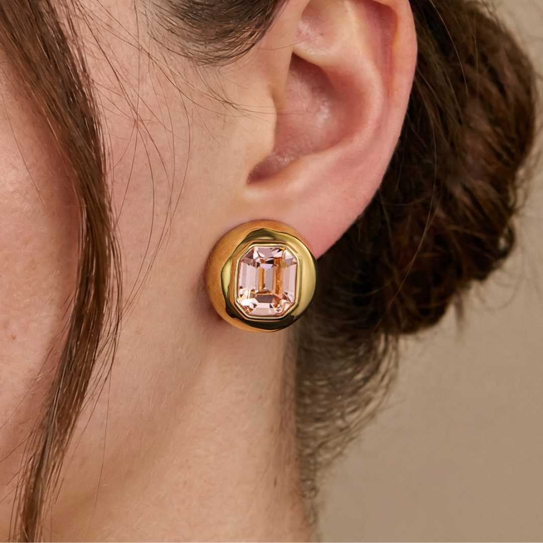 Traveller Boucles d'oreilles clip - Doré - Cristaux - Vintage Rose - 13x11mm - Octogonal - 20mm - Circulaire