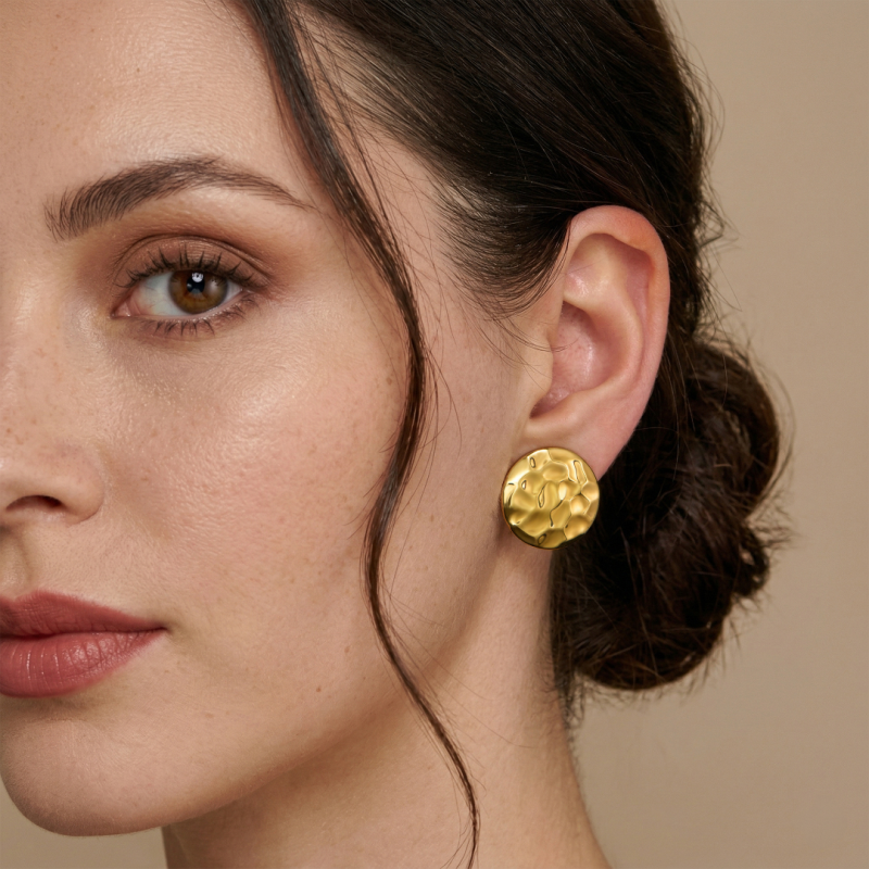 Traveller Boucles d'oreilles clip - Doré - Texture Martelée - 20mm - Circle