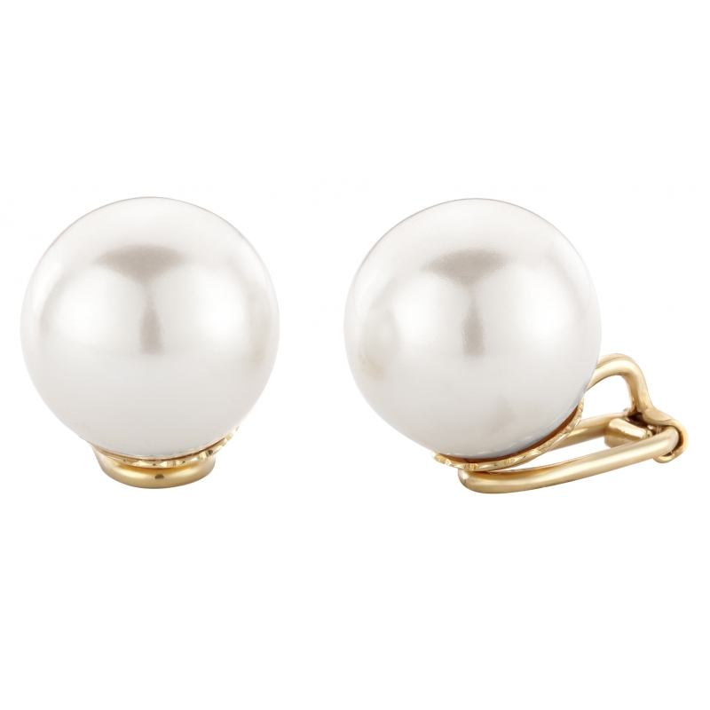 Traveller Boucles d'oreilles clip - doré - 16mm perles blanches