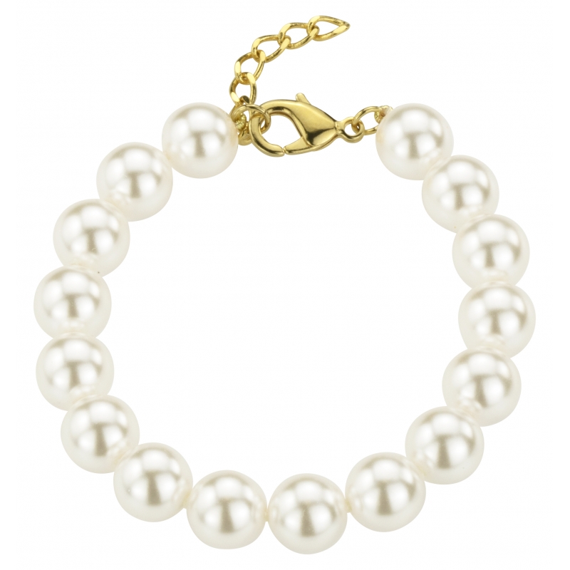 Traveller Bracelet 10mm/18+3cm perles blanches - Fermoir mousqueton - doré