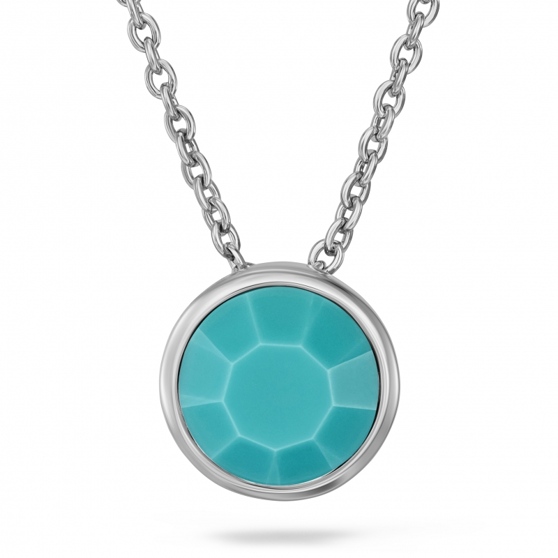Traveller Collier pedantif - Platiné - Cristaux - Turquoise - 10mm - 40+4+4 cm