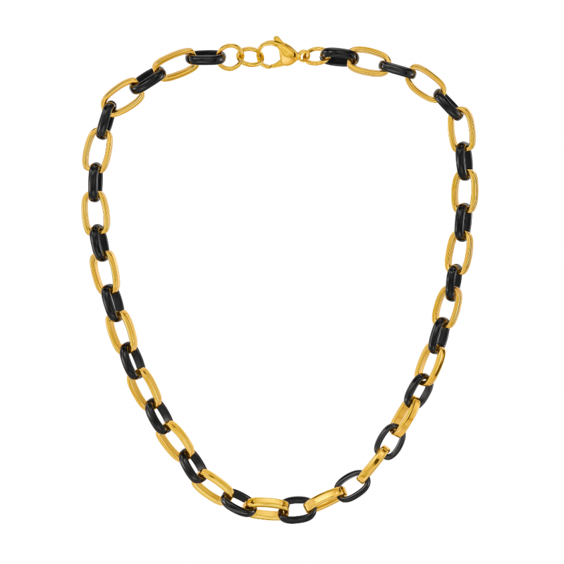 Traveller Collier - Acier - Doré & Noir - Maillons ovales - 47cm