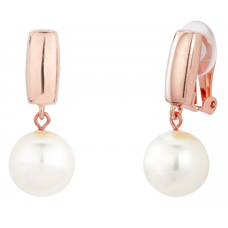 Traveller Boucles d'oreilles clip pendants - 18kt Doré rose - Perles - Ø 12mm - Blanc