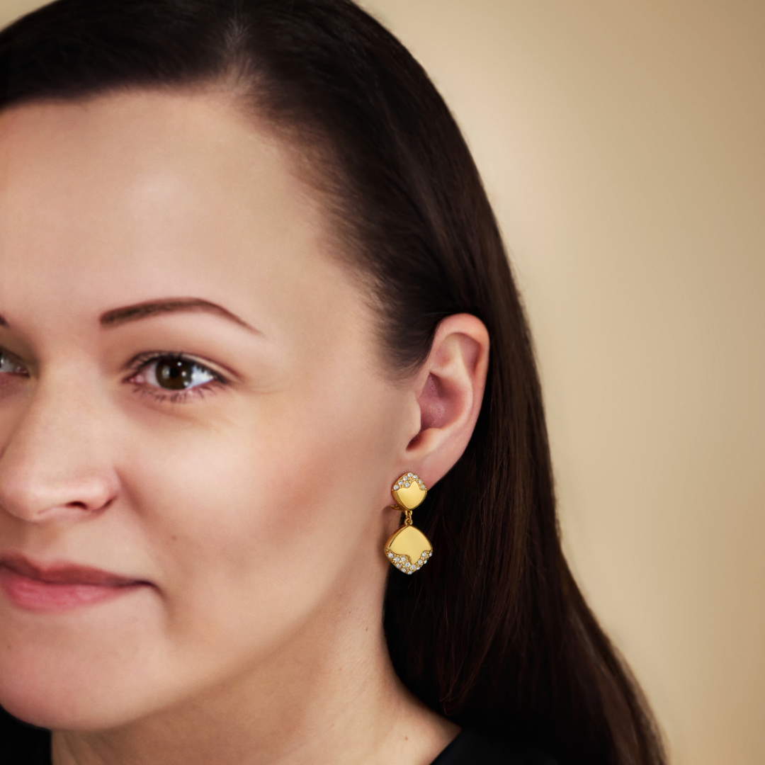 Traveller Boucles d'oreilles clip pendants - Doré - Cristaux - 30x15 mm - Carré