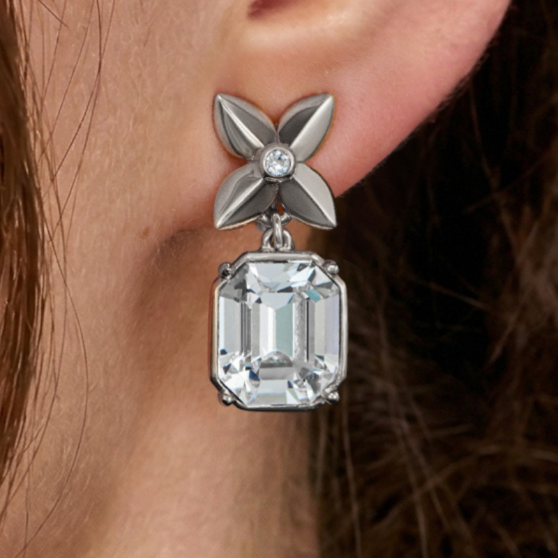 Traveller Boucles d'oreilles clip pendantes - Platiné - Cristaux - Octogonal - 27 x 12 mm - Fleur