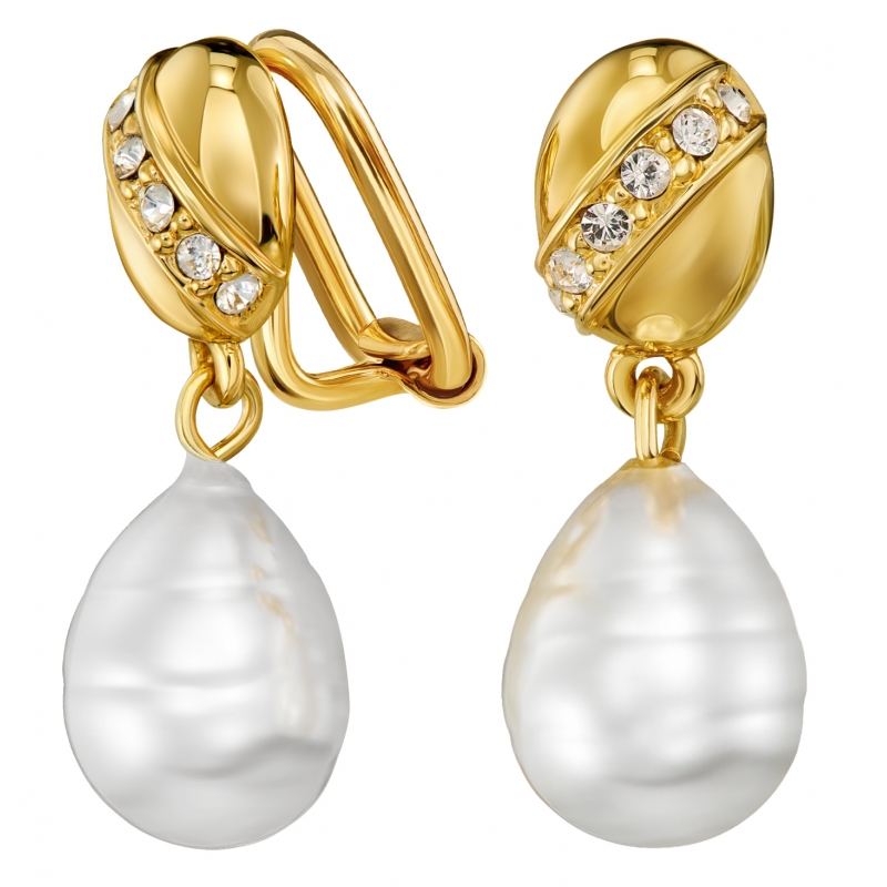 Traveller Boucles d'oreilles clip pendants - doré - Cristaux - 8x10mm perles baroques