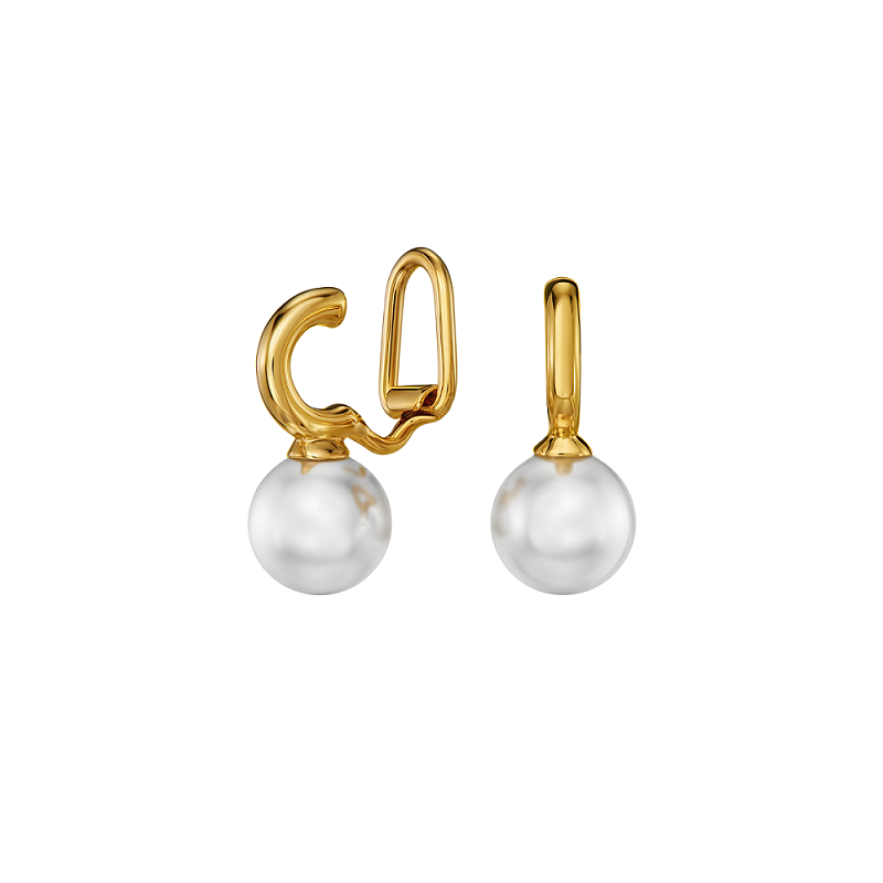 Traveller Boucles d'oreilles clip pendants - Doré - Perles - 10 mm - Blanc - 20x10 mm