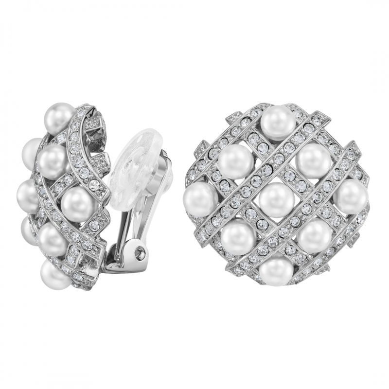Traveller Boucles d'oreilles Clip - Platiné - Perles - 4mm - Blanc - 22x22 mm