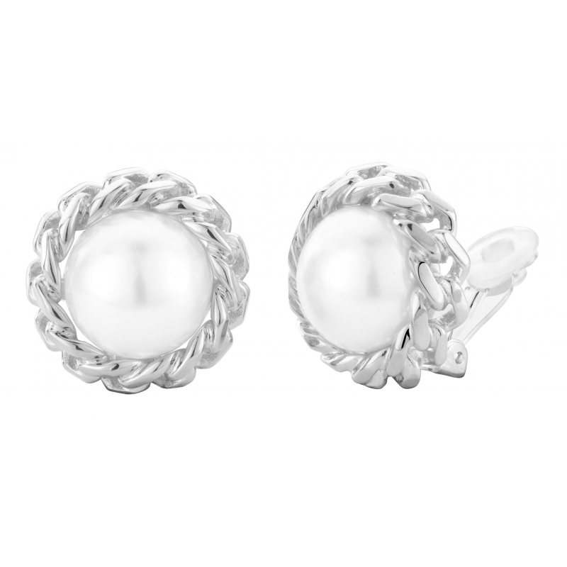 Traveller Boucles d'oreilles clip - platiné - 16mm perles blanches