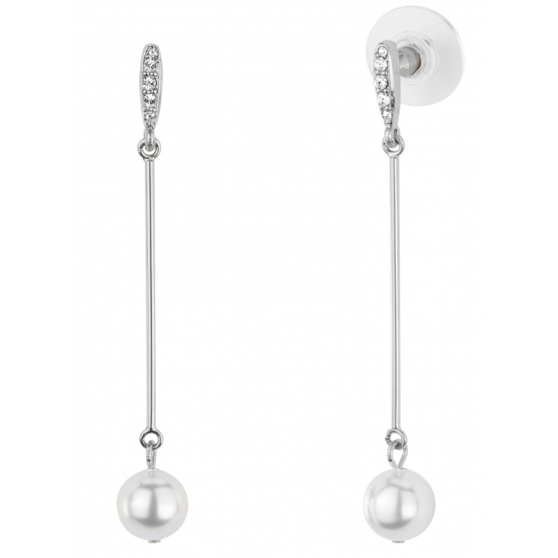 Traveller Boucles d'oreilles pendants - platiné - 8mm perles blanches - cristaux
