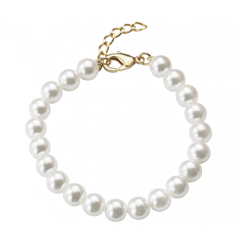Traveller Armband - 8mm/18+3cm parel wit - karabijn verguld