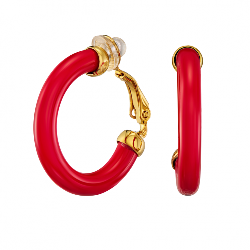 Traveller Oorclips - Oorringen - Verguld 22ct - Rood Resin - 25 mm