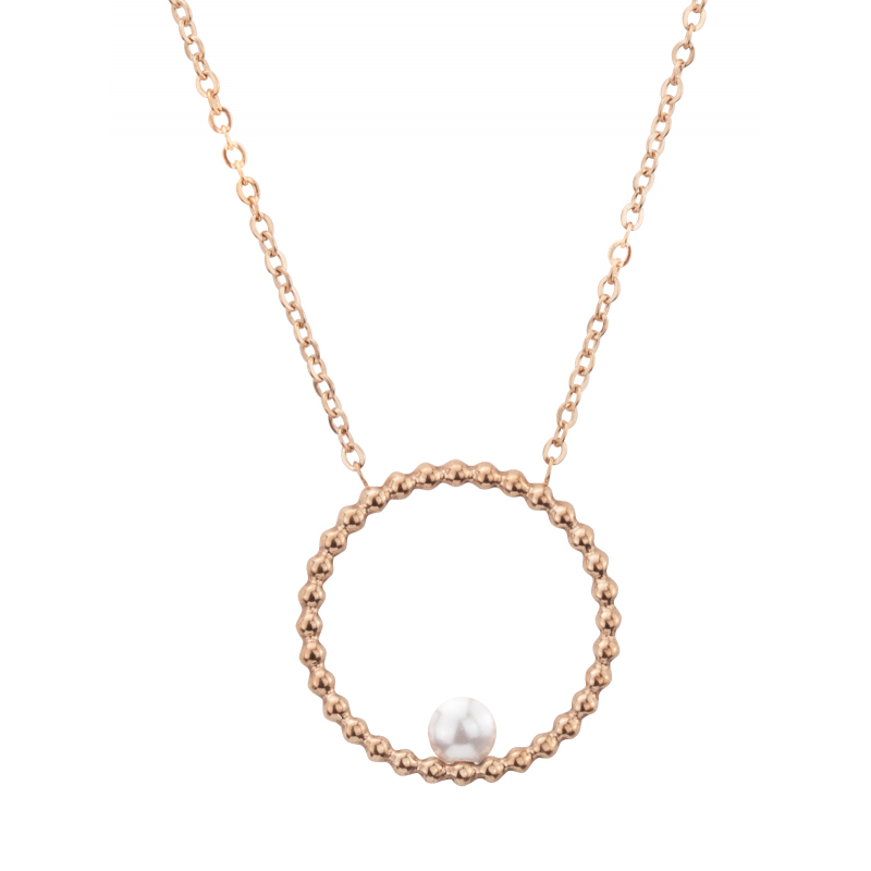 Traveller Ketting - Edelstaal rose verguld - parel - 45+5cm