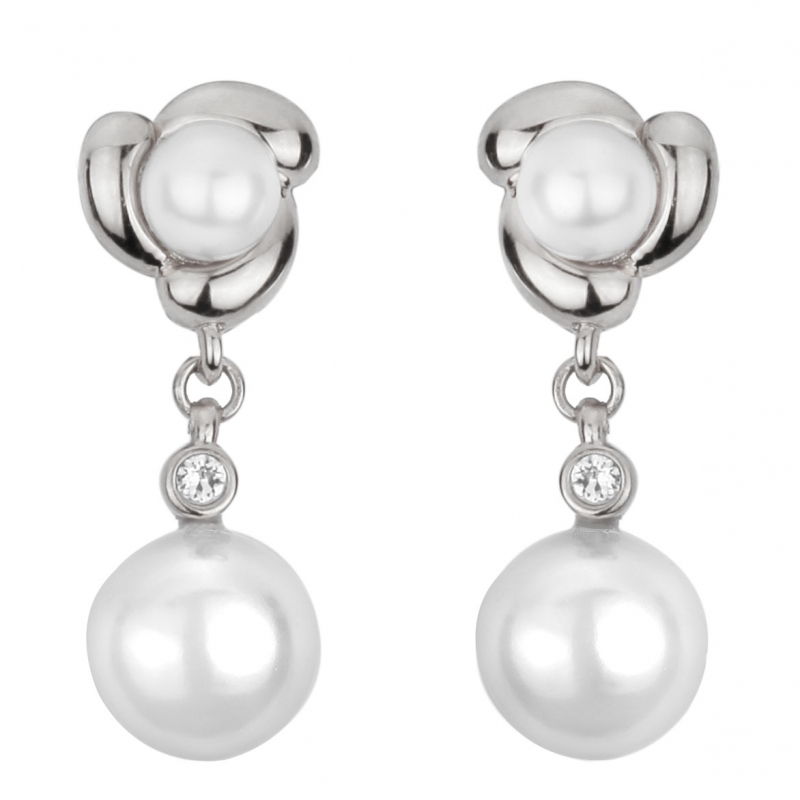 Traveller Oorclips Hanger - geplatineerd - 6/10mm parels wit