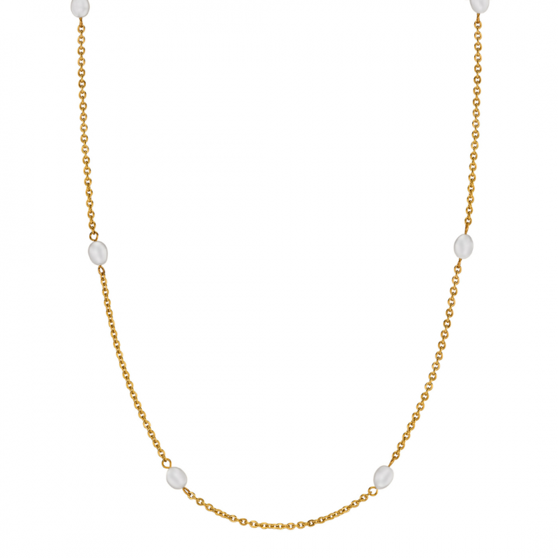 Traveller Ketting - Verguld - Zoetwater Parels - Wit - 10x6 mm - Edelstaal