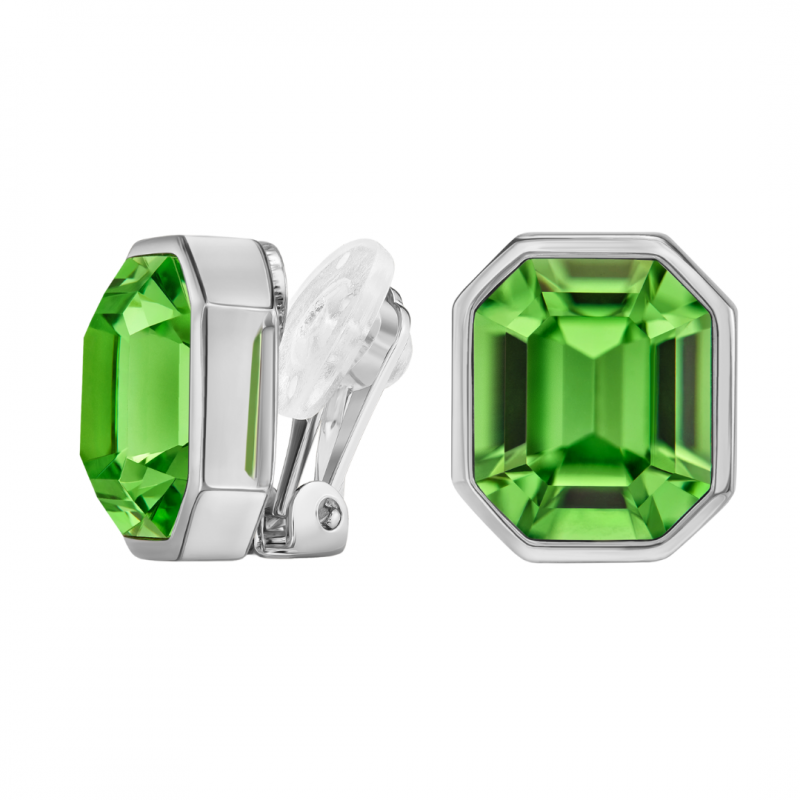 Traveller Oorclips - Geplatineerd - Kristal - Groen / Peridot - 12x11 mm - 14x12mm