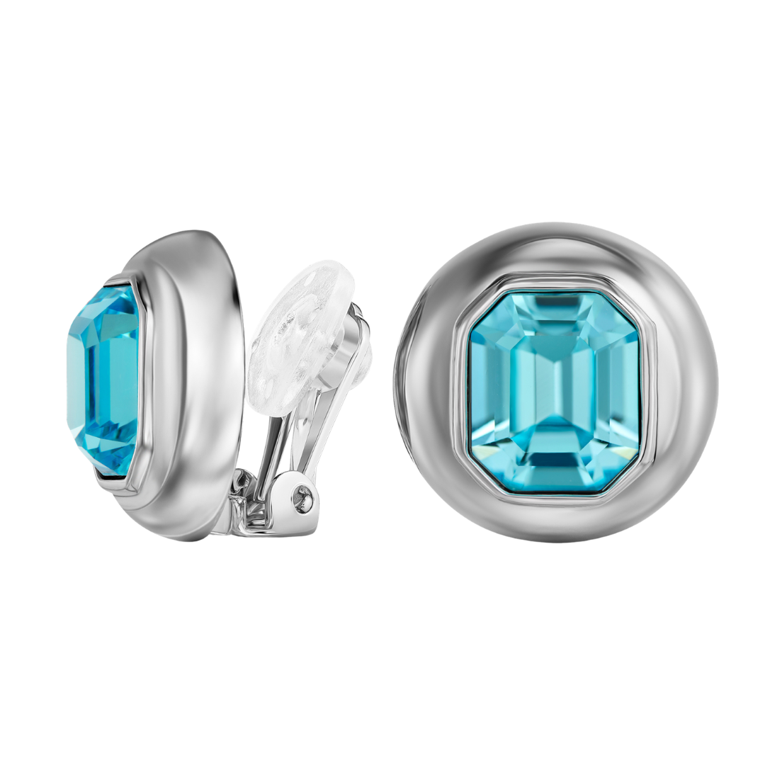 Traveller Oorclips - Geplatineerd - Kristal - Aqua Bohemica - 13x11mm - Achthoek - 20mm - Rond