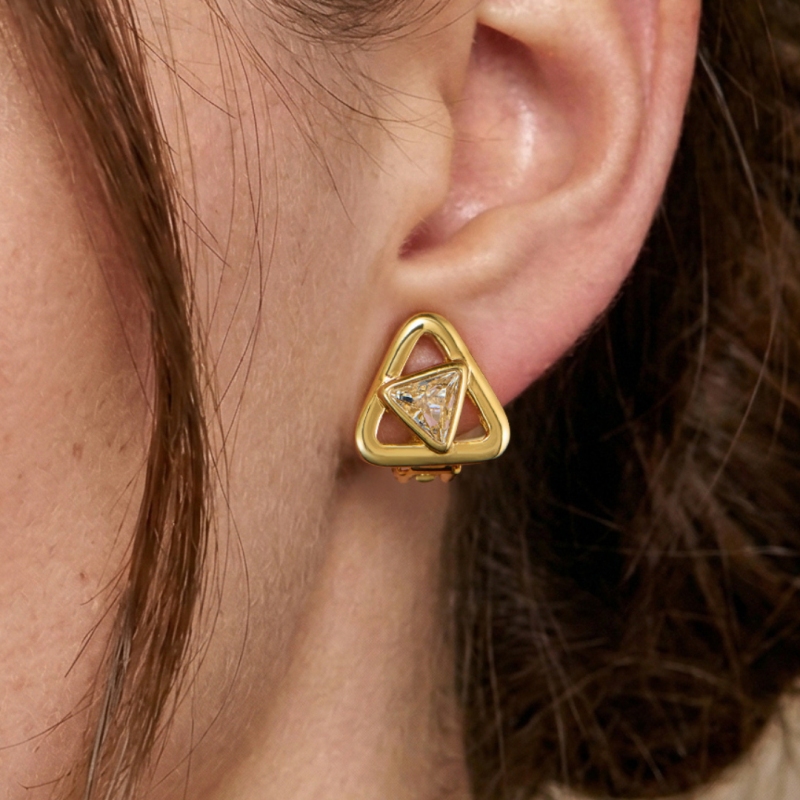 Traveller Oorclips - Verguld - Kristal - 7mm - Driehoek - 15mm - Driehoek