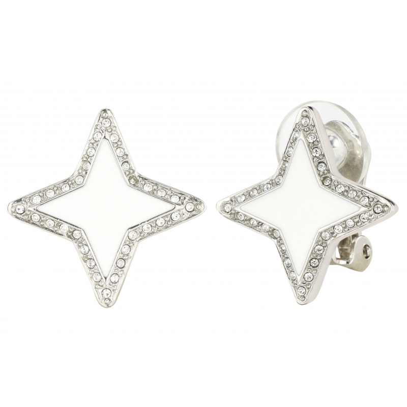 Traveller oorclips - geplatineerd - kristal - wit emaille