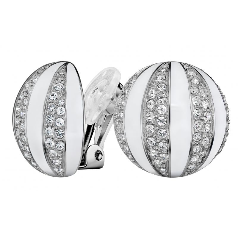 Traveller Oorclips - geplatineerd - kristal - wit email