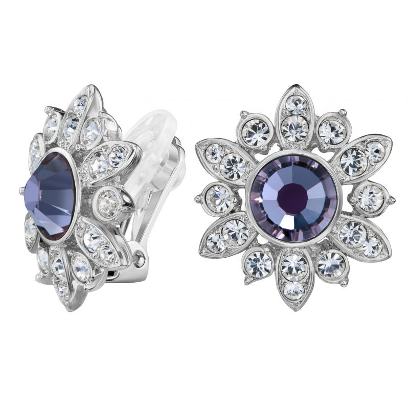 Traveller Oorclips - geplatineerd - kristal - mesmera