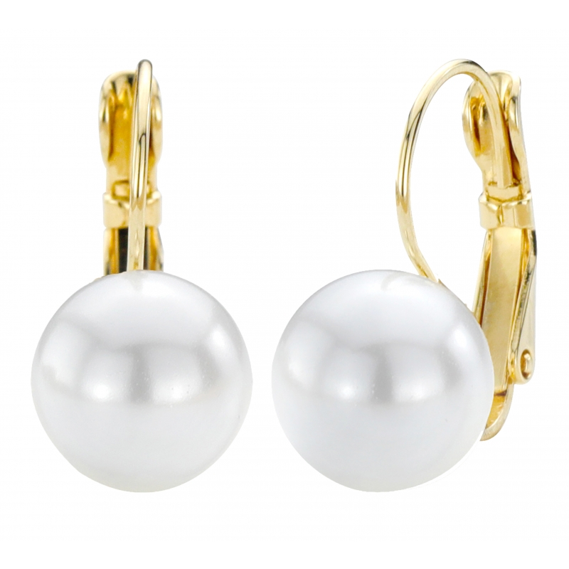 Traveller Oorhangers Brisur - verguld - 10mm parel wit