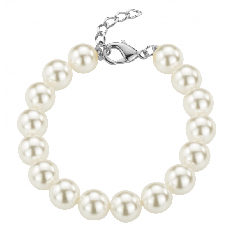 Traveller Armband - 10mm/18+3cm parel wit - karabijn geplatineerd